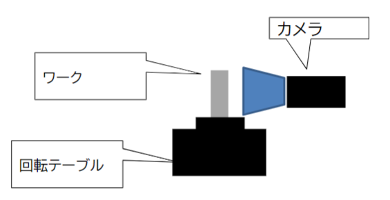 回転テーブルを等速度で回転させて、ワークの全周を撮像します。