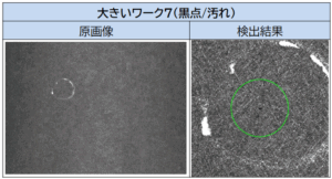 黒点を良好に検知できていますが、本ワークよりも小さい黒点の場合や、色の薄い黒点の場合、検出ができない可能性があります。