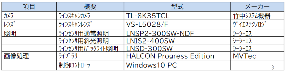 費用が掛かる上、広いスペースが必要となりますが、1ショット3スキャン方式を採用することで、カメラ/レンズ/画像処理ボードが1セットで済むようになります。