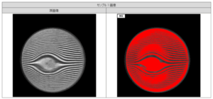 へこみの検知は縞投影照明を用いて、白く光っている面積で判定を行っています。へこみの全サンプルを NG として検出することが可能でした。