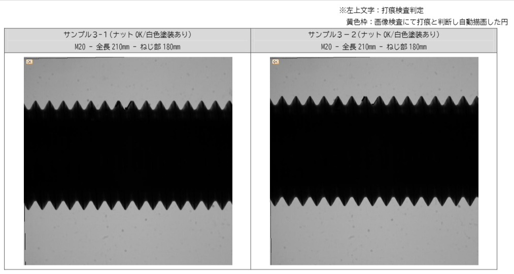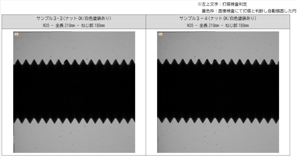 いずれもナットを通し、ナットが止まった部分の打痕について検知が可能かを検討しています。
